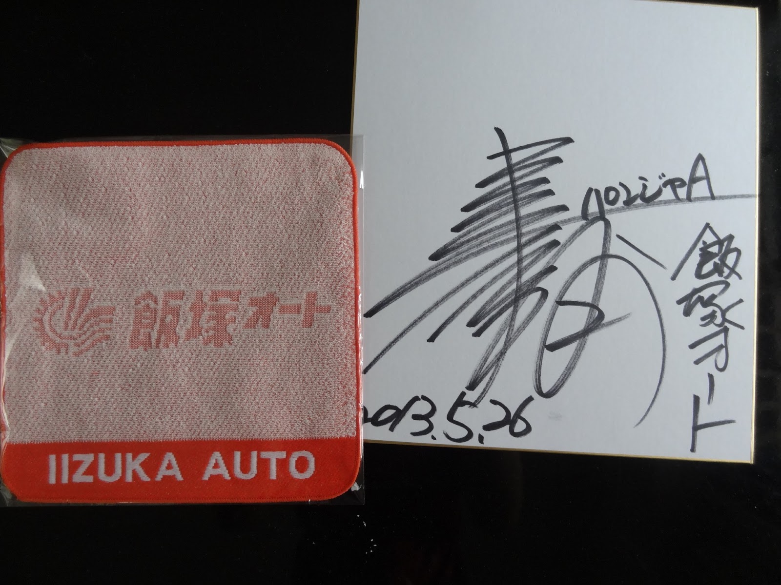 On our way out of the stadium, there was a small performance/game being played on stage. When we went to check it out, they were in the "choose members of the audience to participate" portion and yours truly got picked to participate (I'm sure it had nothing to do with me sticking out like a sore thumb, being the only blonde one and all..). The game ended up being a toy game where you stick small swords into a barrel and if the pirate hops out, you were deducted. So I won that too! As a prize, I was given a Iizuka auto hand towel and the autograph of Murata senshu, one of the motorcyclists of that day! Waddaaapp!