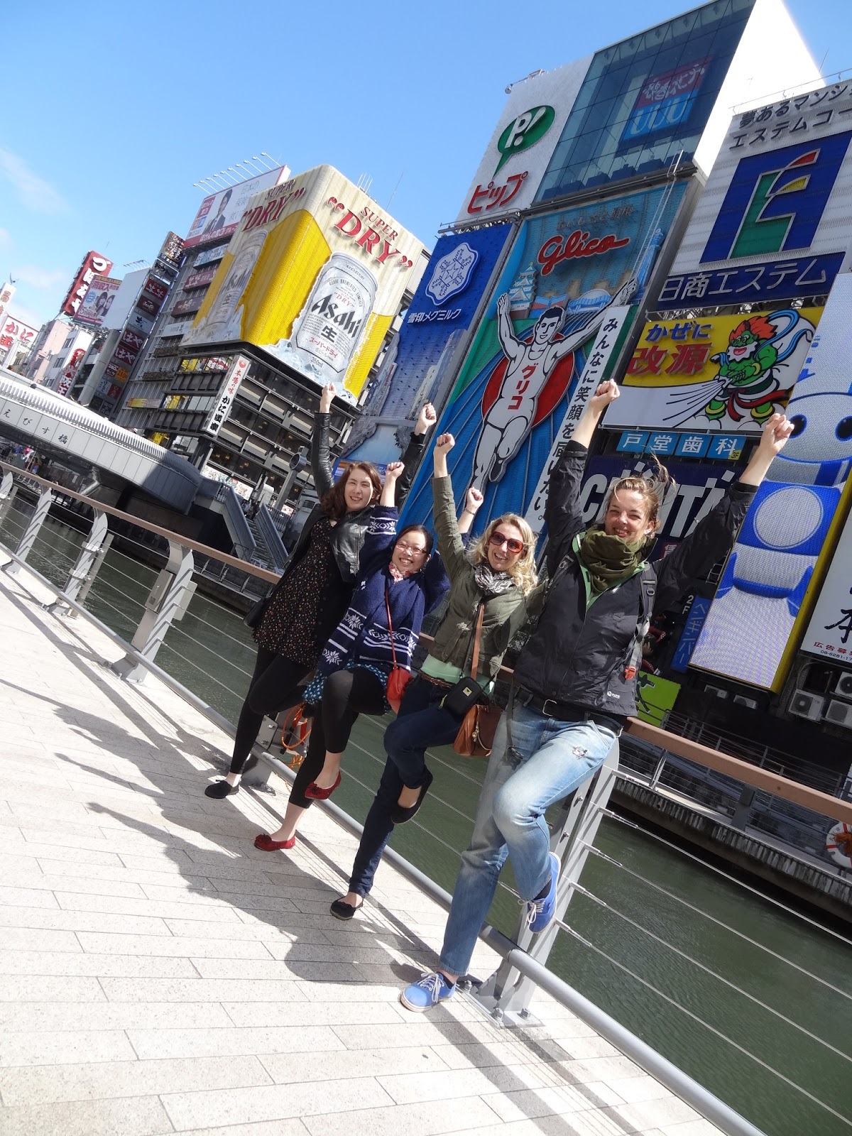 The following day, Taichi showed us a nice place for lunch and ended up joining all of us for a walk around Osaka city. He showed us around and had a fun time shopping and sight seeing with us. We visited Amerika Mura (a region of the city designed to be like the United States, Statue of Liberty and all) and Dotonbori Street, a marvelous cluster of shops and buildings flashing with signs along the Dotombori gawa River. Dotonbori is famous for a heck of a night scene, awesome takoyaki (one shop even has a singing and dancing octopus out front) and the Glico man always posed for a photo. There is also an AMAZING store along Dontonbori called Don Quijote composed of 8 floors of absolute amazingness, including an entire section devoted to matcha flavoured chocolates and candy! The pocky was particularly tasty :)