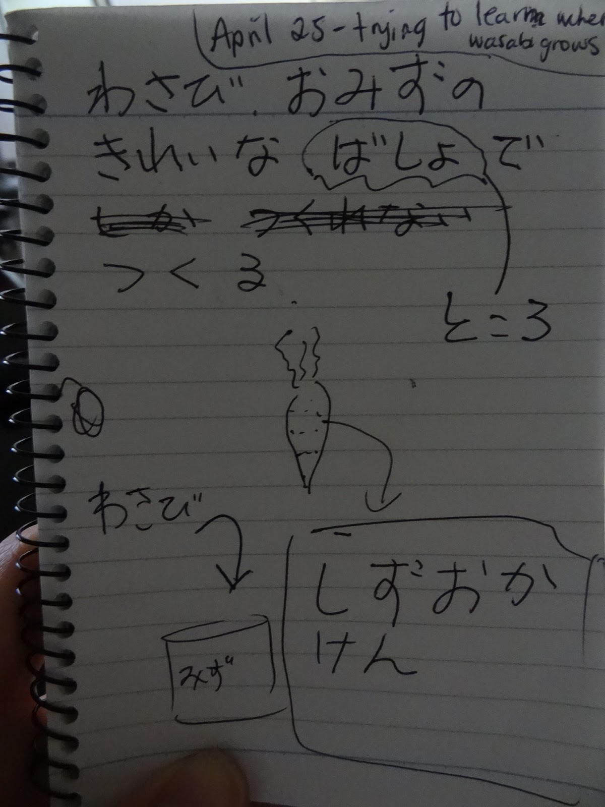 For the past week, I've been working with the nurse aids Nakano san and Nishimura san on the North 7th floor. They're both great and usually laugh as they say "wakaranai!" ("you don't understand") when I look blank faced. Today, Nishimura san spent 40 minutes trying to explain to me that the vegetable that's used to make wasabi grows near clean water. I had to get her to write it down so I could look it up at home after.