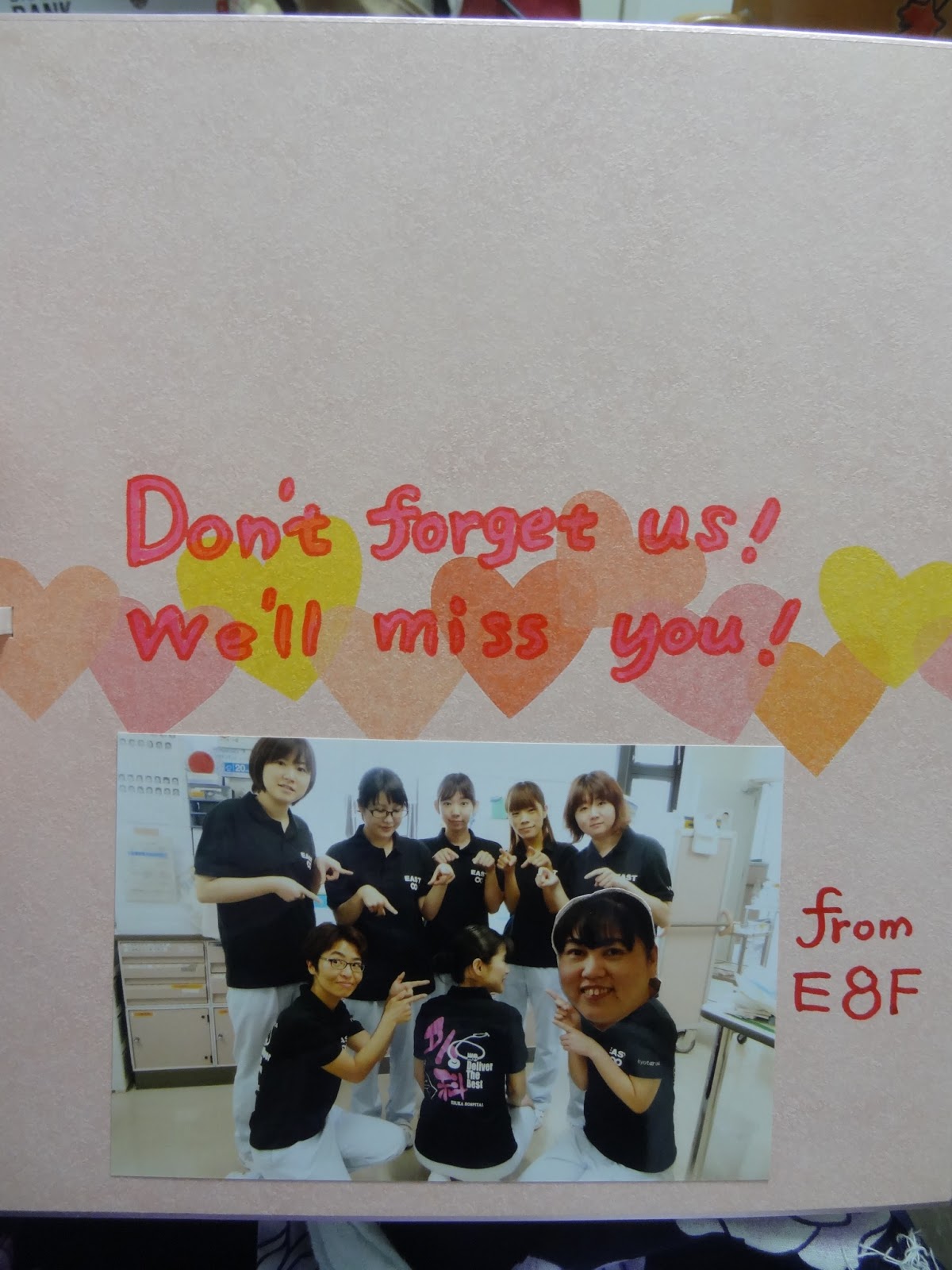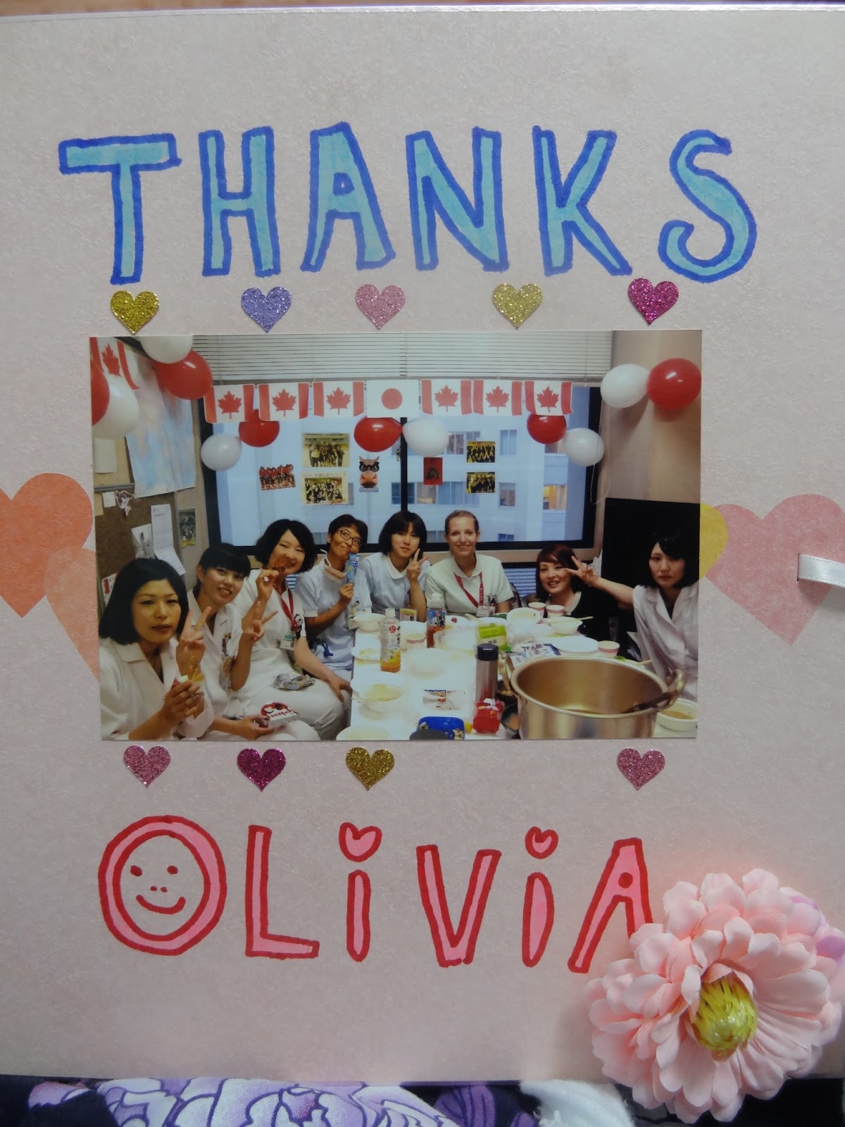 amaaaaazing card that they'd all made and signed! It's hilarious! My new goal is to learn enough Japanese to be able to read all of the comments. :) I am so happy to have had the opportunity to work with such wonderful people these past four weeks. I will certainly miss them a lot. I plan on having dinner with Shinga san, the head nurse, sometime soon :).